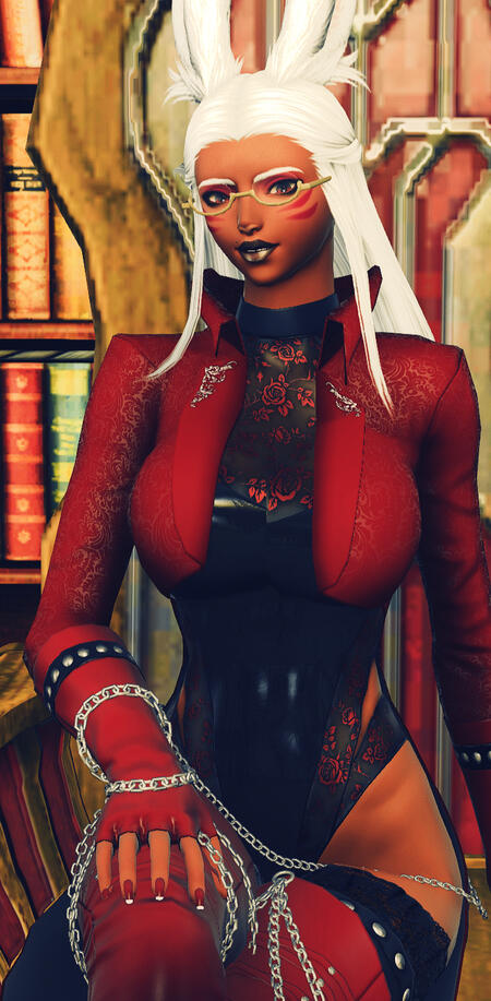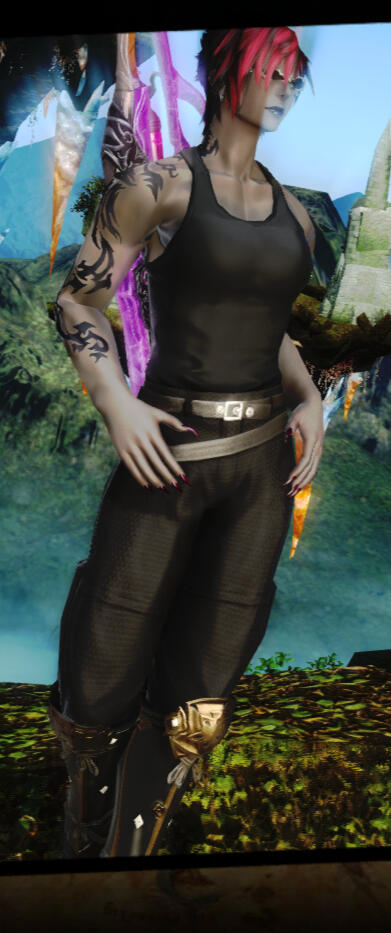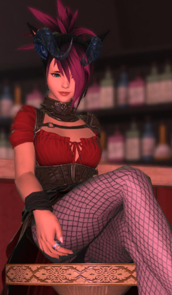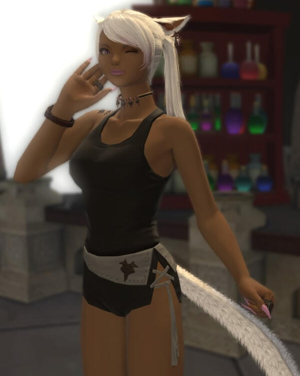 Personality: Voidsent in the form of a Roegadyn. Deliberately low-key. Unfailingly polite but not a pushover. Somewhat aloof at first but warms to a person. Black widow.